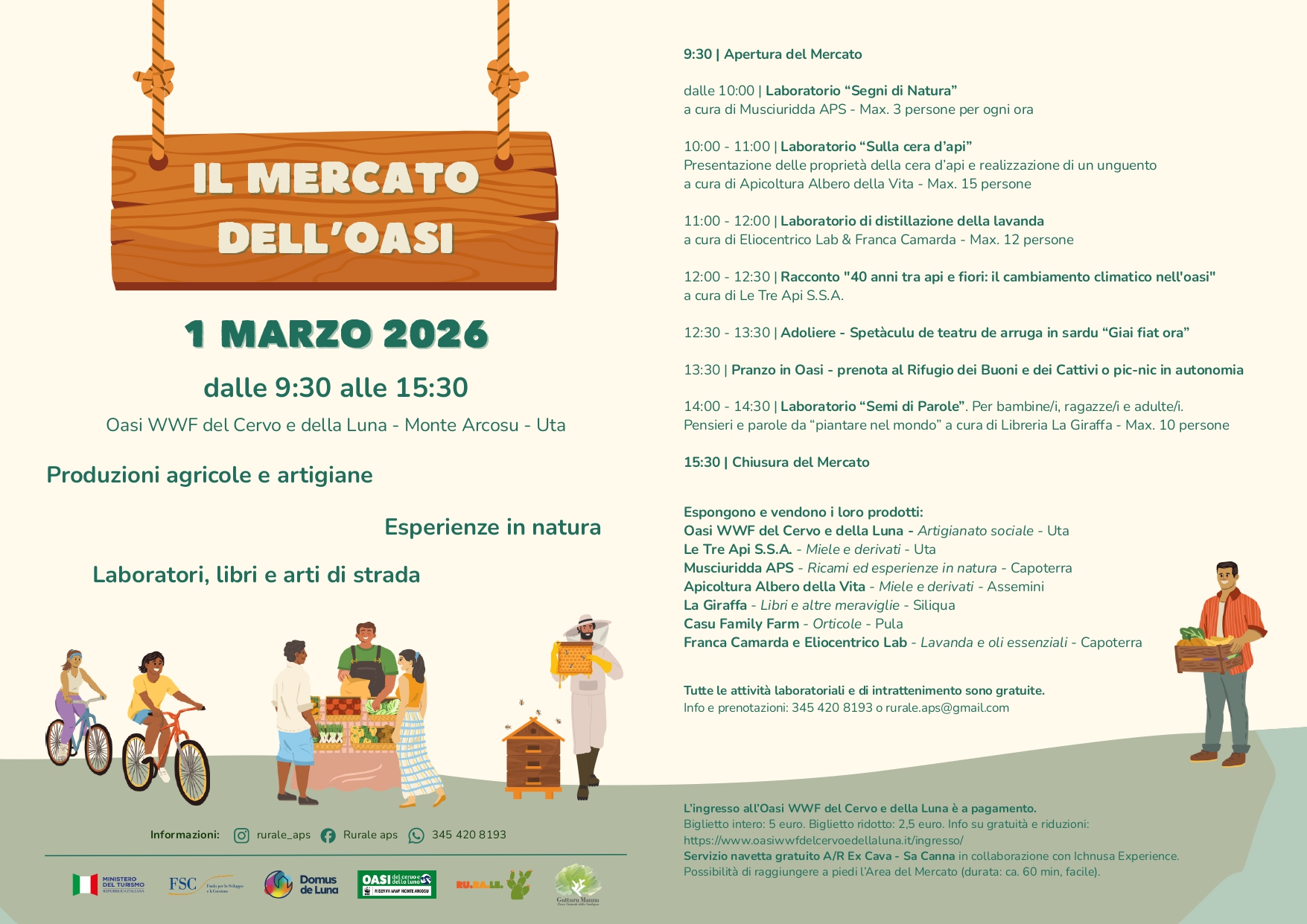 Mercato e laboratori in natura all’Oasi WWF del Cervo e della Luna a Monte Arcosu, Uta, con prodotti agricoli e artigianali, laboratori per adulti e bambini, spettacoli e esperienze immersive nella natura, il 1° marzo 2026 dalle 9:30 alle 15:30