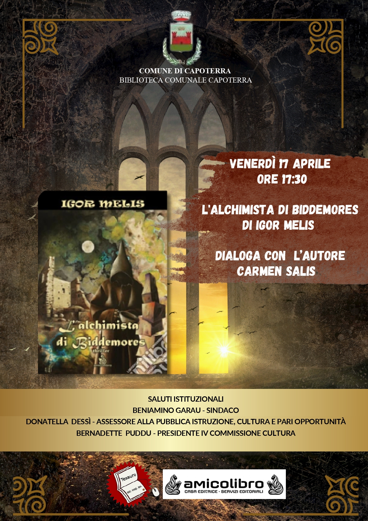 Venerdì 17 aprile alle ore 17:30 si terrà un incontro dedicato alla presentazione del libro “L’alchimista di Biddemores” di Igor Melis.