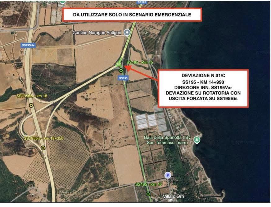 La Centrale Operativa della Protezione Civile ha comunicato che ANAS ha chiuso la Strada Statale 195, nel tratto compreso tra il km 5 e il km 11, a causa delle condizioni meteo avverse in corso.