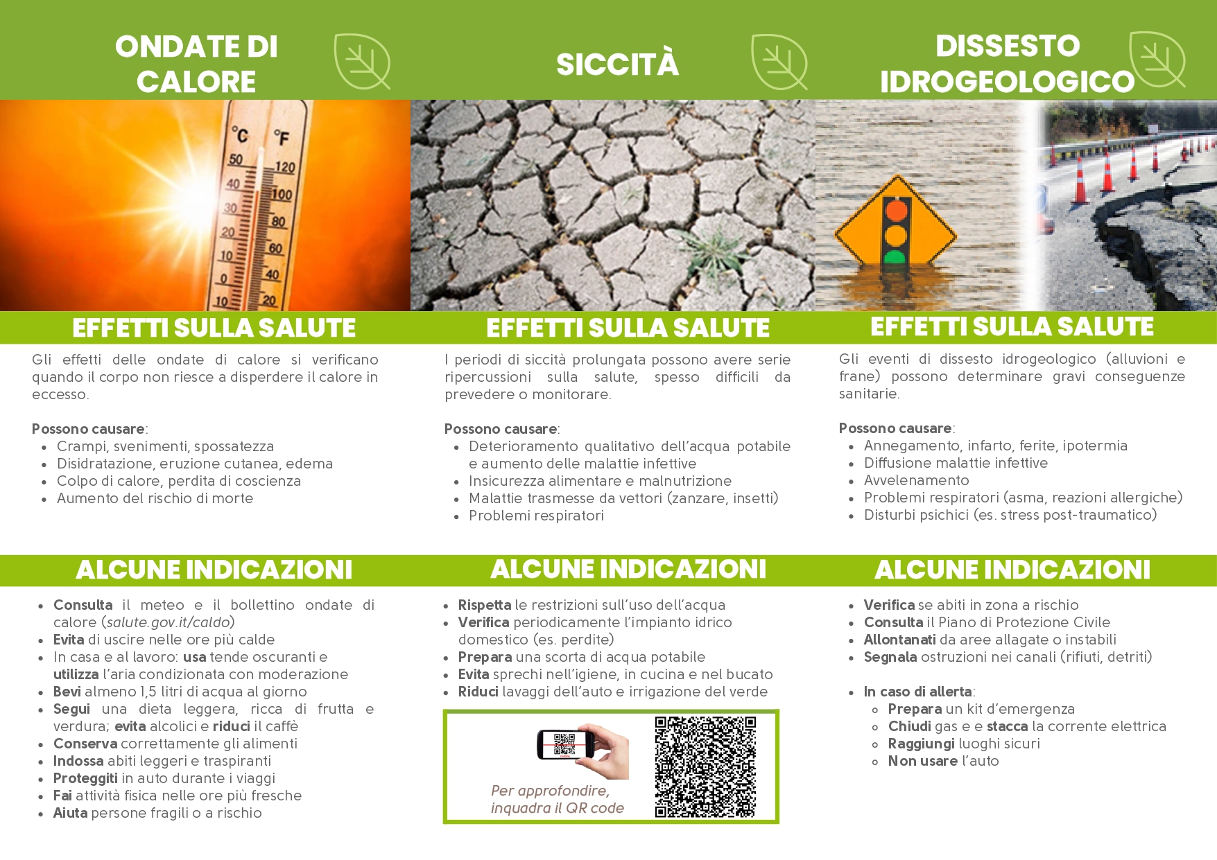 Cambiamenti climatici e salute: proteggi te stesso e gli altri da caldo, siccità e alluvioni, adottando comportamenti sostenibili.