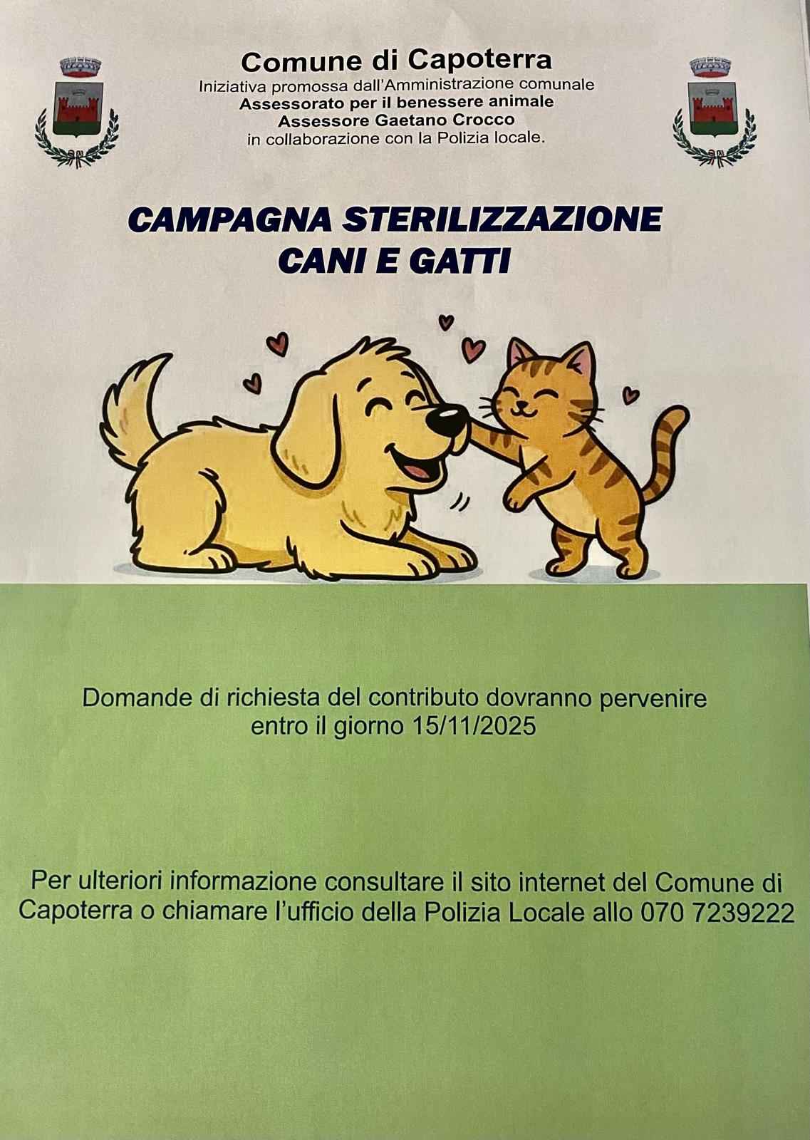 - Bando per la concessione di un contributo finalizzato alla sterilizzazione dei cani di proprietà e dei gatti