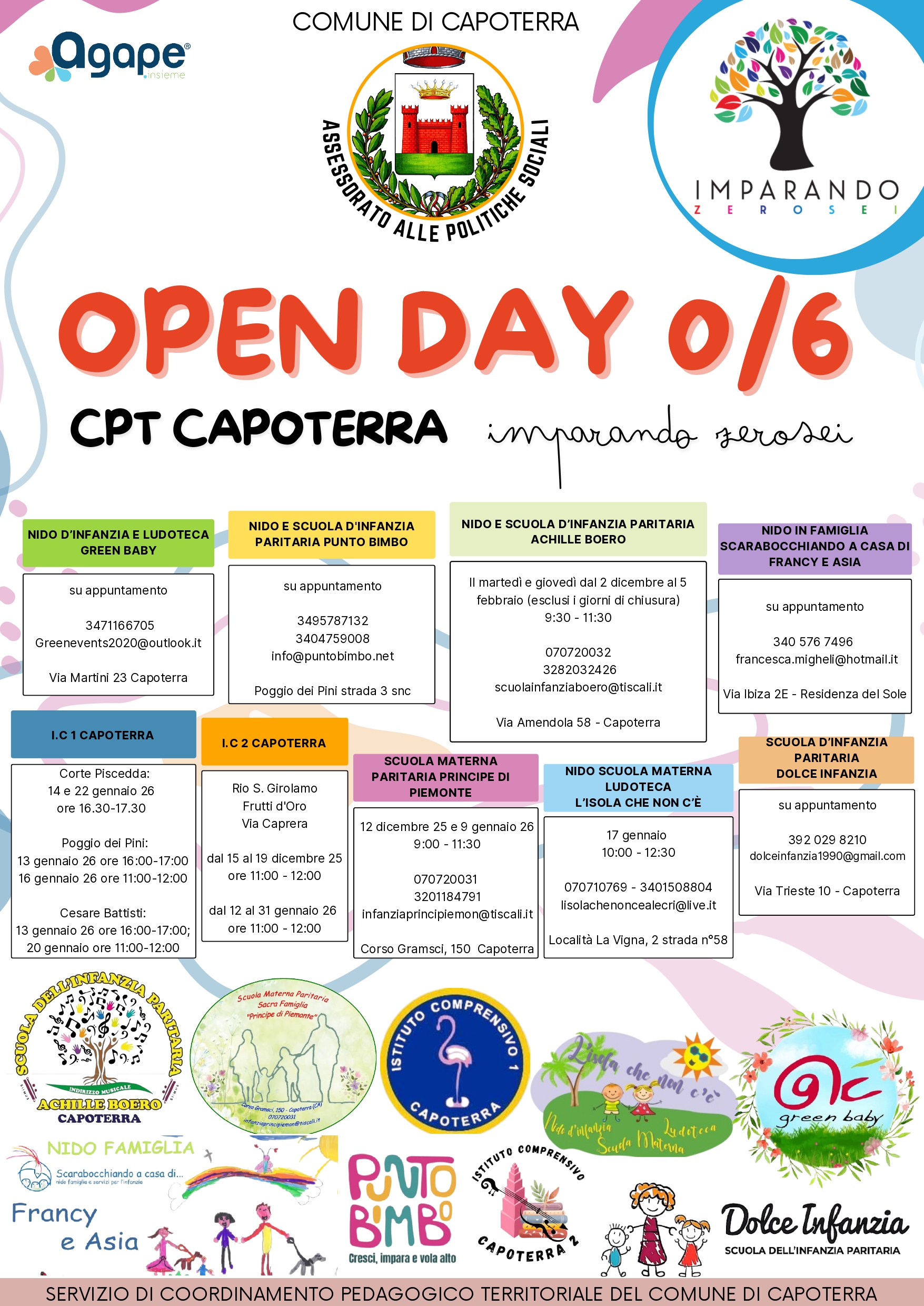 Open day 0/6 : In allegato orari ed indirizzi per visitare le scuole fascia 0/6