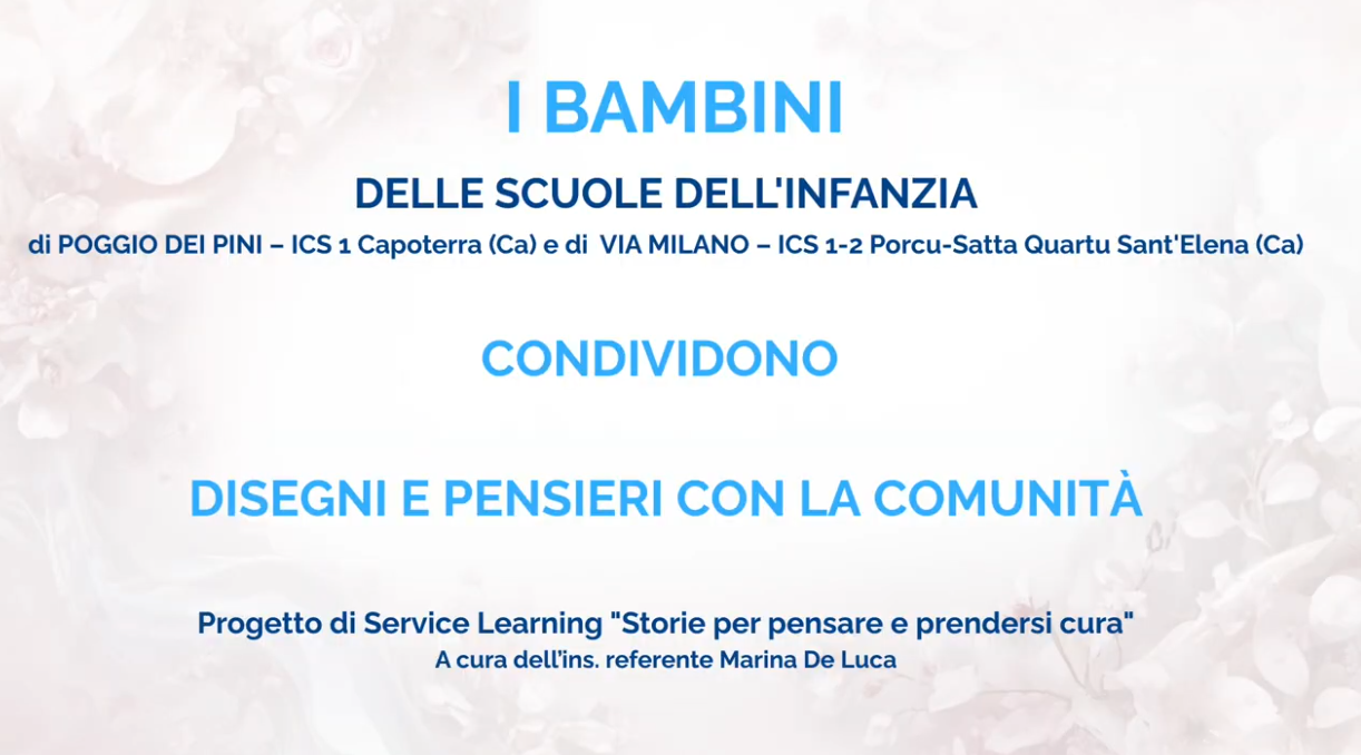 Il video presenta la fase conclusiva del progetto di Service Learning “Storie per pensare e prendersi cura”, che coinvolge i bambini delle scuole dell’infanzia di Poggio dei Pini e di via Milano (ICS 1 Capoterra e ICS 1-2 Quartu Sant’Elena).